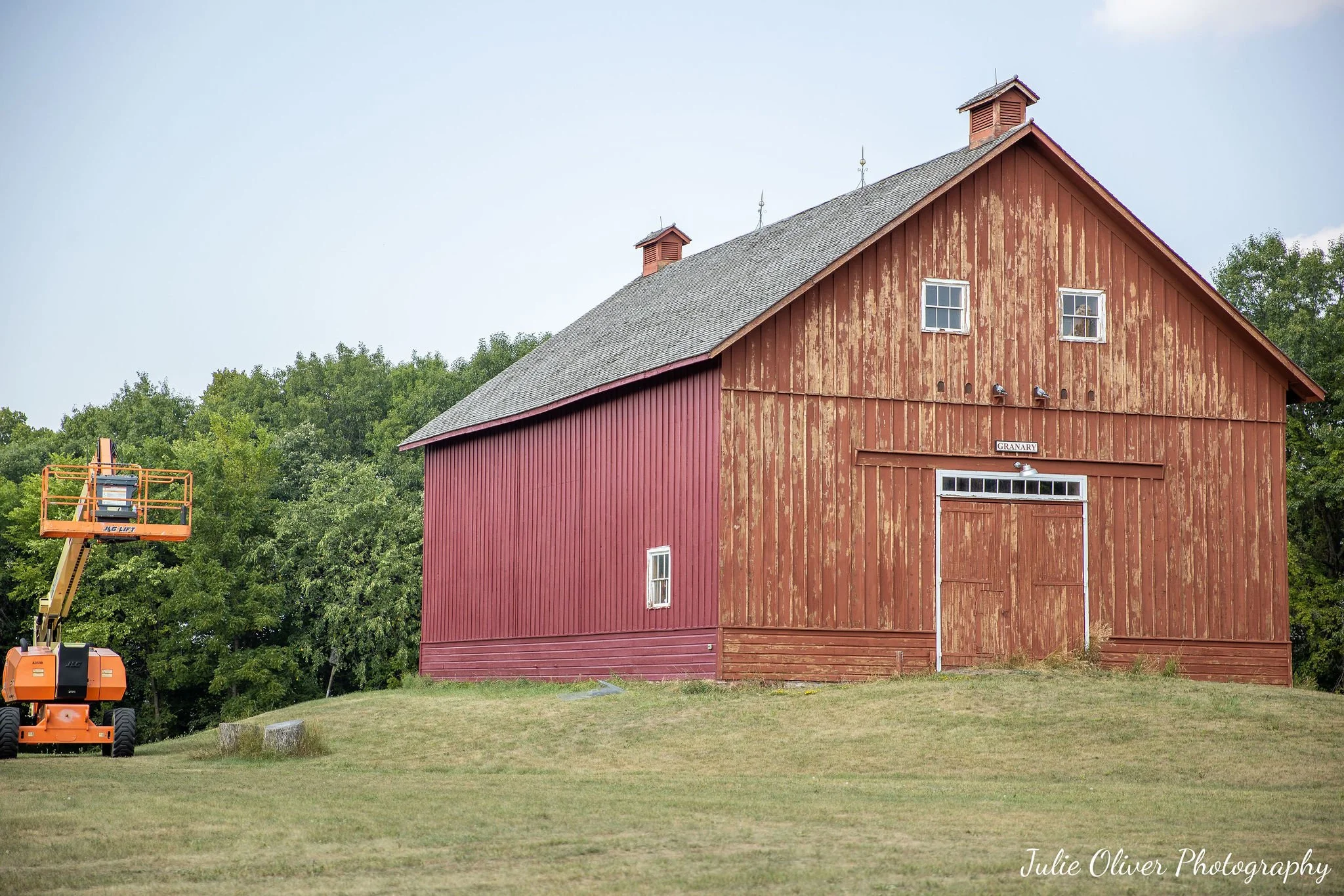 When is a red barn not a barn? It is a Granary when a building is used for storing grain and has ventilation provided by wood ducts extending upward to two roof ridge cupolas. Additionally, this granary has a root cellar.